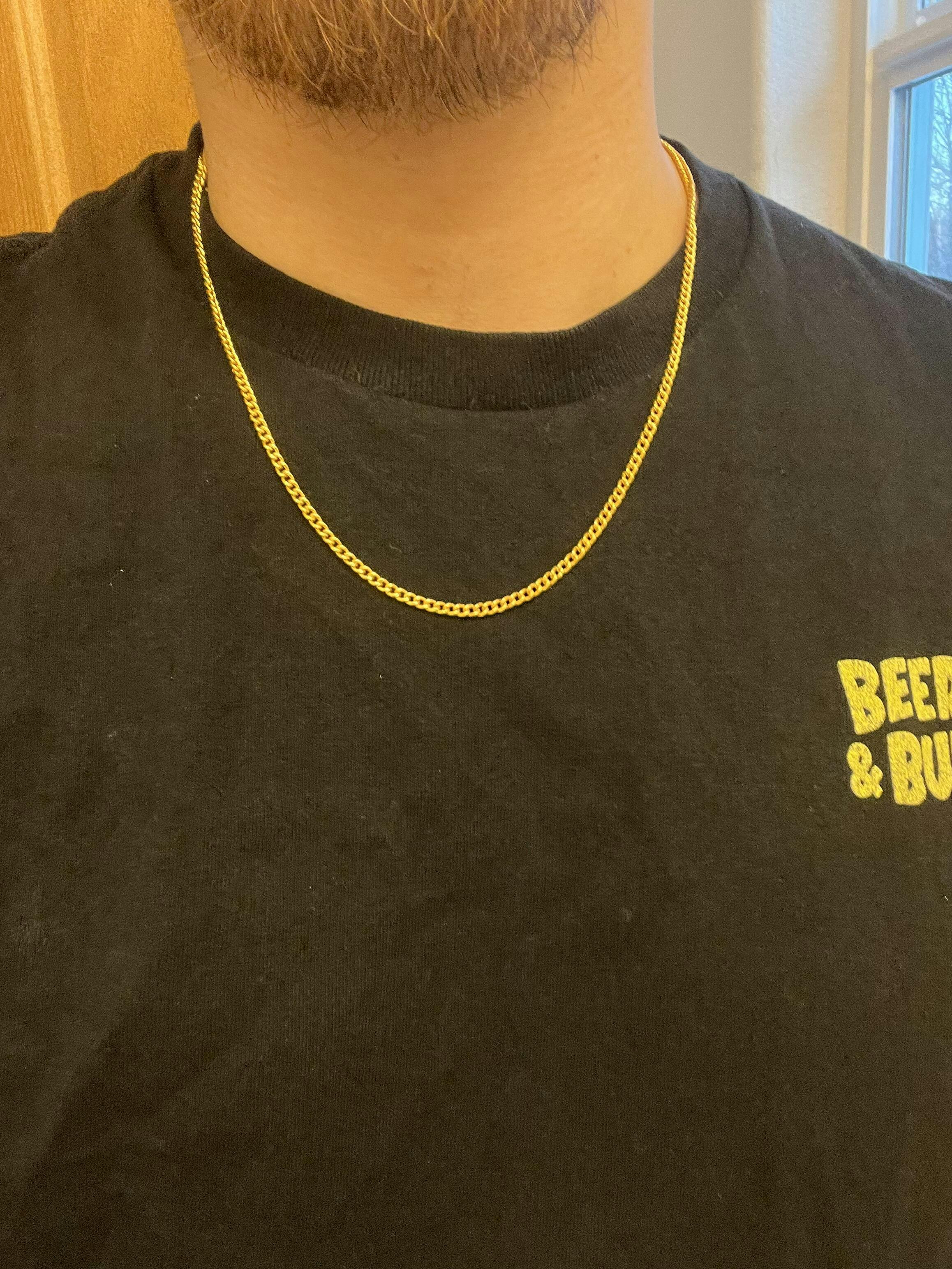 24K pure gold curb chain necklace sold by gram weight and crafted by a husband and wife duo. We craft jewelry pieces that is not just an accessory, but a store of value and a way of preserving wealth that can potentially appreciate over time.